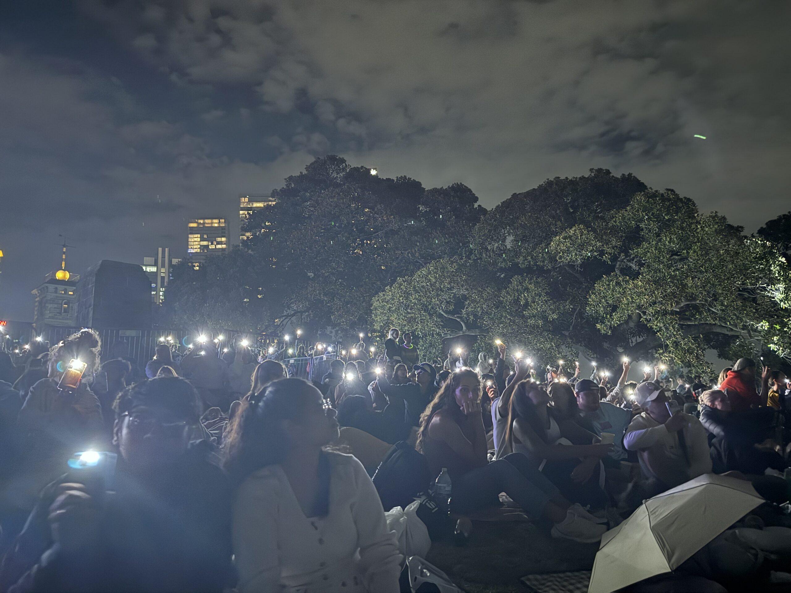 Klokken 23 ble det to minutters stillhet. Hele folkemengden holdt telefonene i været med lys på, til minne om Bondi-katastrofen.