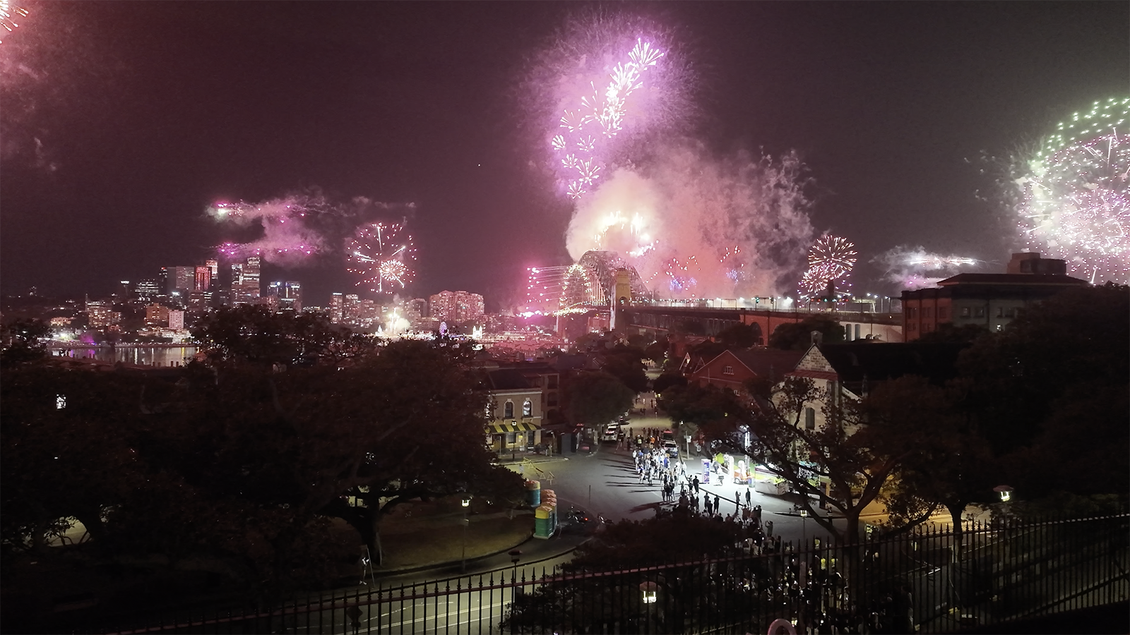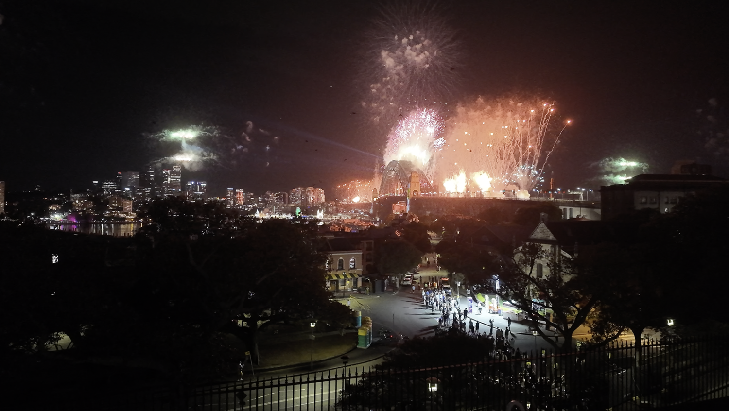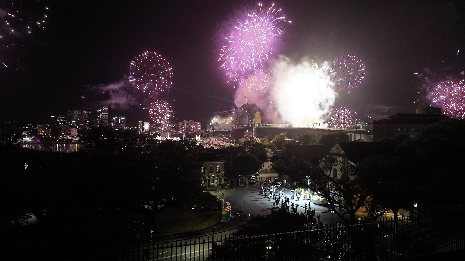 Så, etter 18 timers venting: oppvåkning. Og for en oppvåkning. Fyrverkeriet startet presis, og himmelen eksploderte. Det er vanskelig å beskrive – dette var enormt. Det forrige fyrverkeriet var veldig bra, men dette? Minst ti ganger større. Plutselig var både ventetiden og hotellprisen glemt. Dette var rett og slett magisk. For å dekke det måtte jeg bruke både Osmo kameraet og Iphonen samtidig. Alt var i 180 gr i horisonten.